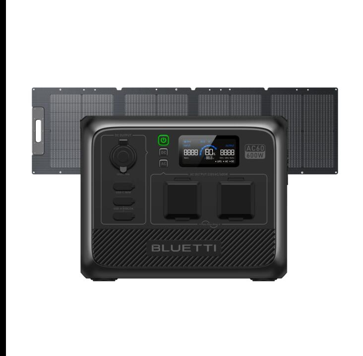 BLUETTI AC60 Portable Power Station | 600W 403Wh, AC60+PV120D | 600W, 403Wh, 120W Solar Kit